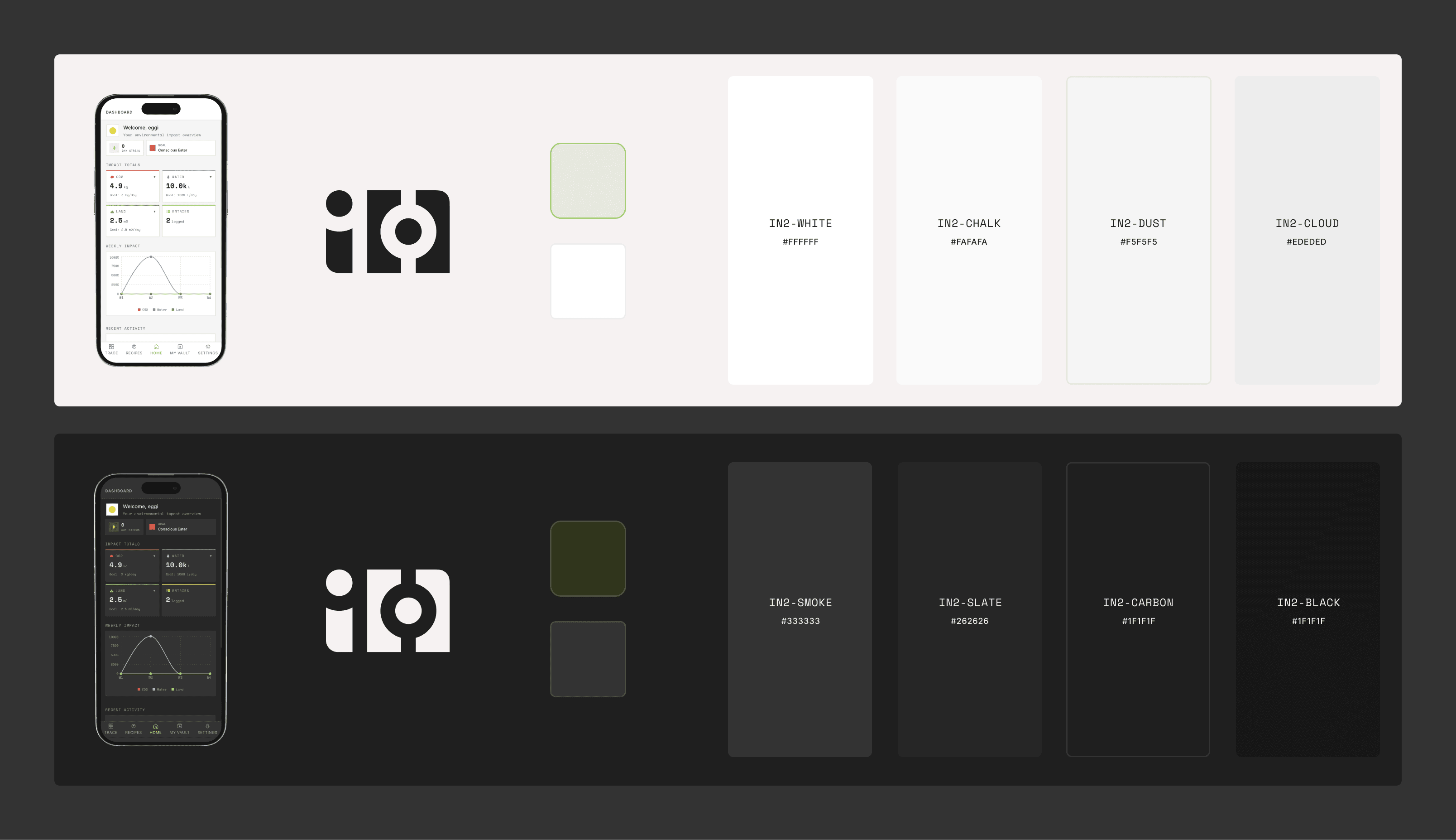 This personal project explores how AI can transform complex, often hidden data into clear and actionable insights. The experience combines environmental metrics, nutritional data, and adaptive recommendations into a system that feels both analytical and personal. Through a minimal, data-focused interface and a dual light/dark visual system, the app reframes food tracking as impact awareness—turning everyday decisions into measurable, evolving patterns.