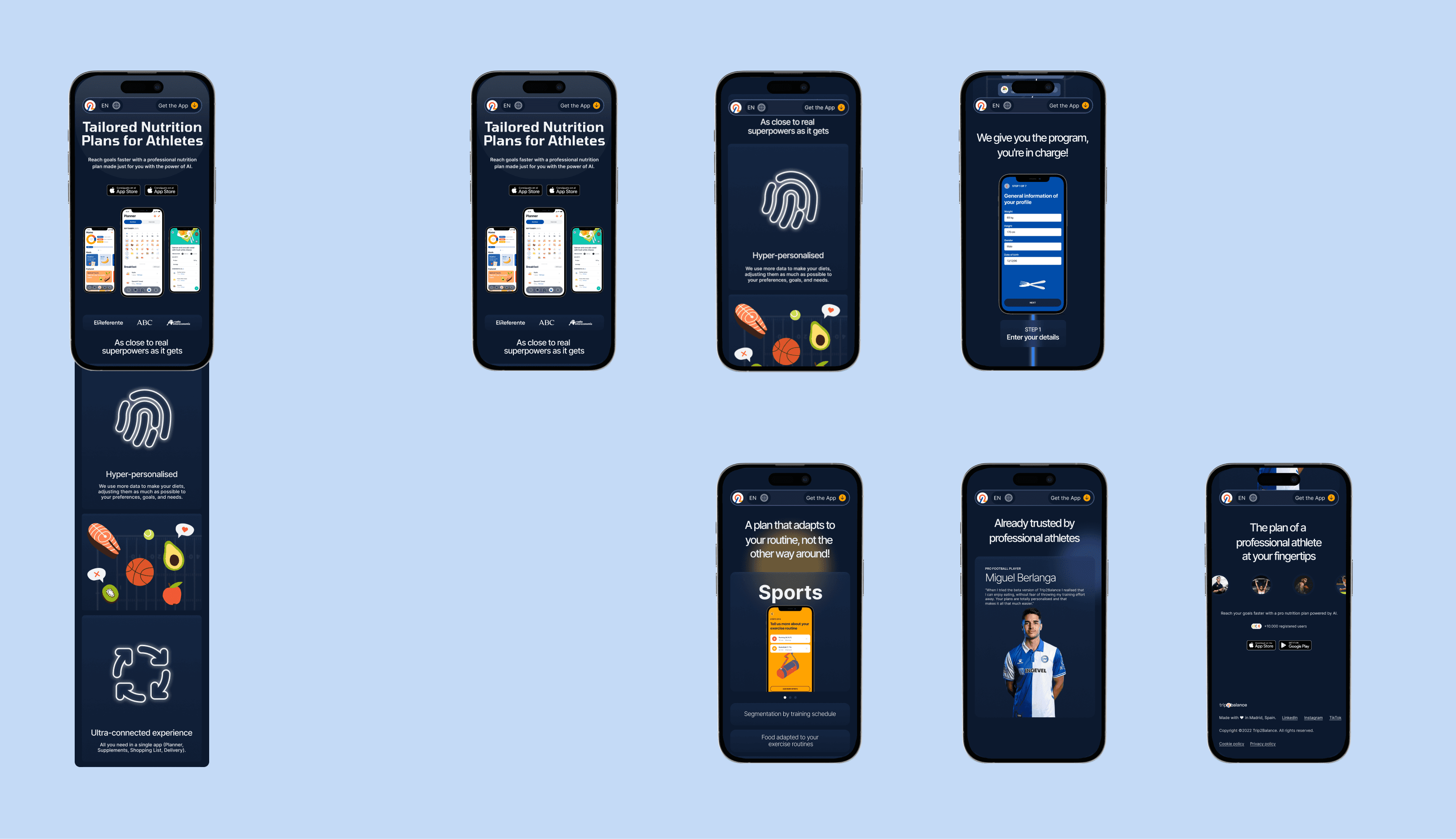 The structure was simplified into a single, focused flow, guiding users through what the product is, why it’s different, and why it’s credible. Messaging shifted from features to outcomes, emphasizing performance over tracking. The visual language evolved to feel more athletic and intentional, with higher contrast, clearer hierarchy, and imagery aligned with real use cases.